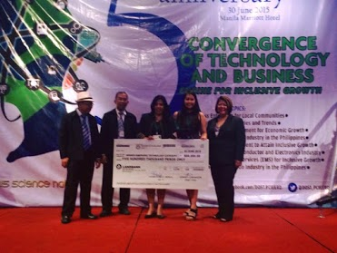 Dr. Ma. Carmen Ablan-Lagman and Dr. Chona Camille VinceCruz-Abeledo receiving the 2015 Outstanding Research and Development Award for the species identification system in mangrove crabs.
